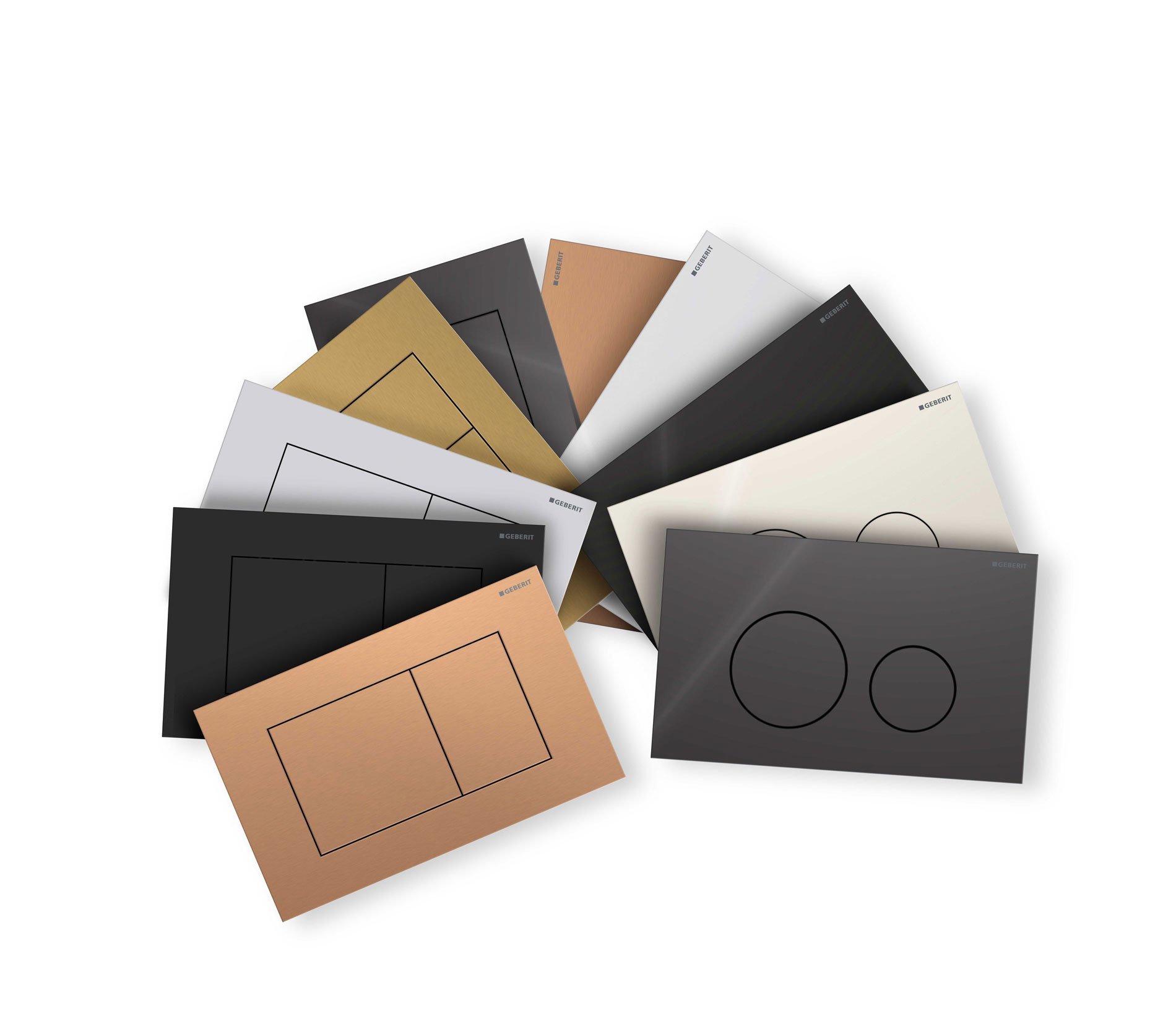 Die neuen Betätigungsplatten Sigma40 und Urinalsteuerungen Typ 40 sind in den Varianten Round und Square erhältlich. Die Betätigungsplatte ist in 10 Farben und drei hochwertigen Oberflächen erhältlich.
